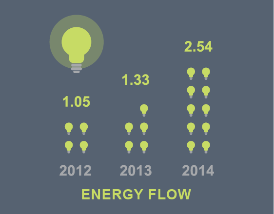 Infographics explaining the flow of Energy, Data, and Money in the rebate program of the California water + energy management company.